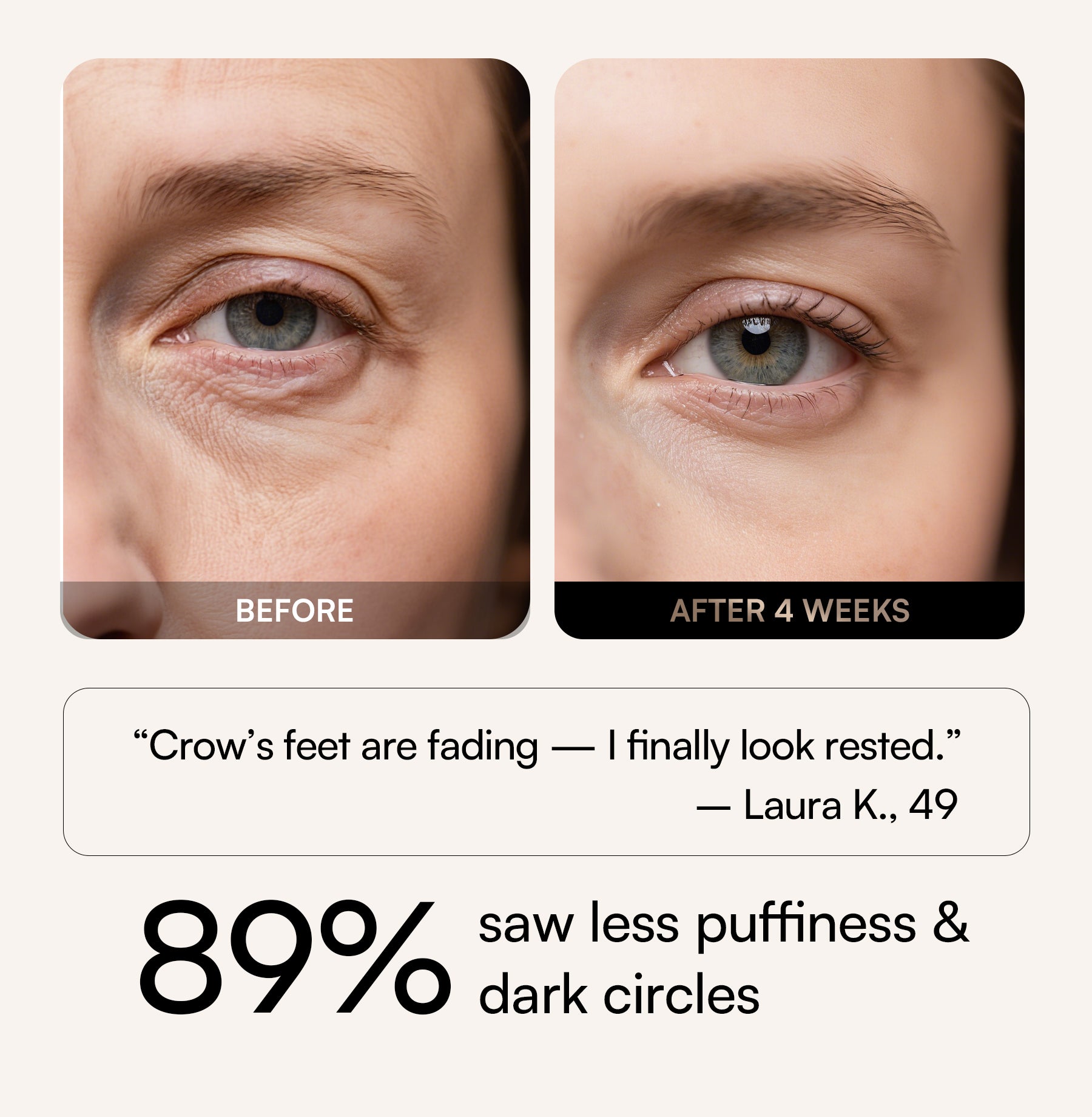 Reduces puffiness and visibly tightens under eyes in just minutes.