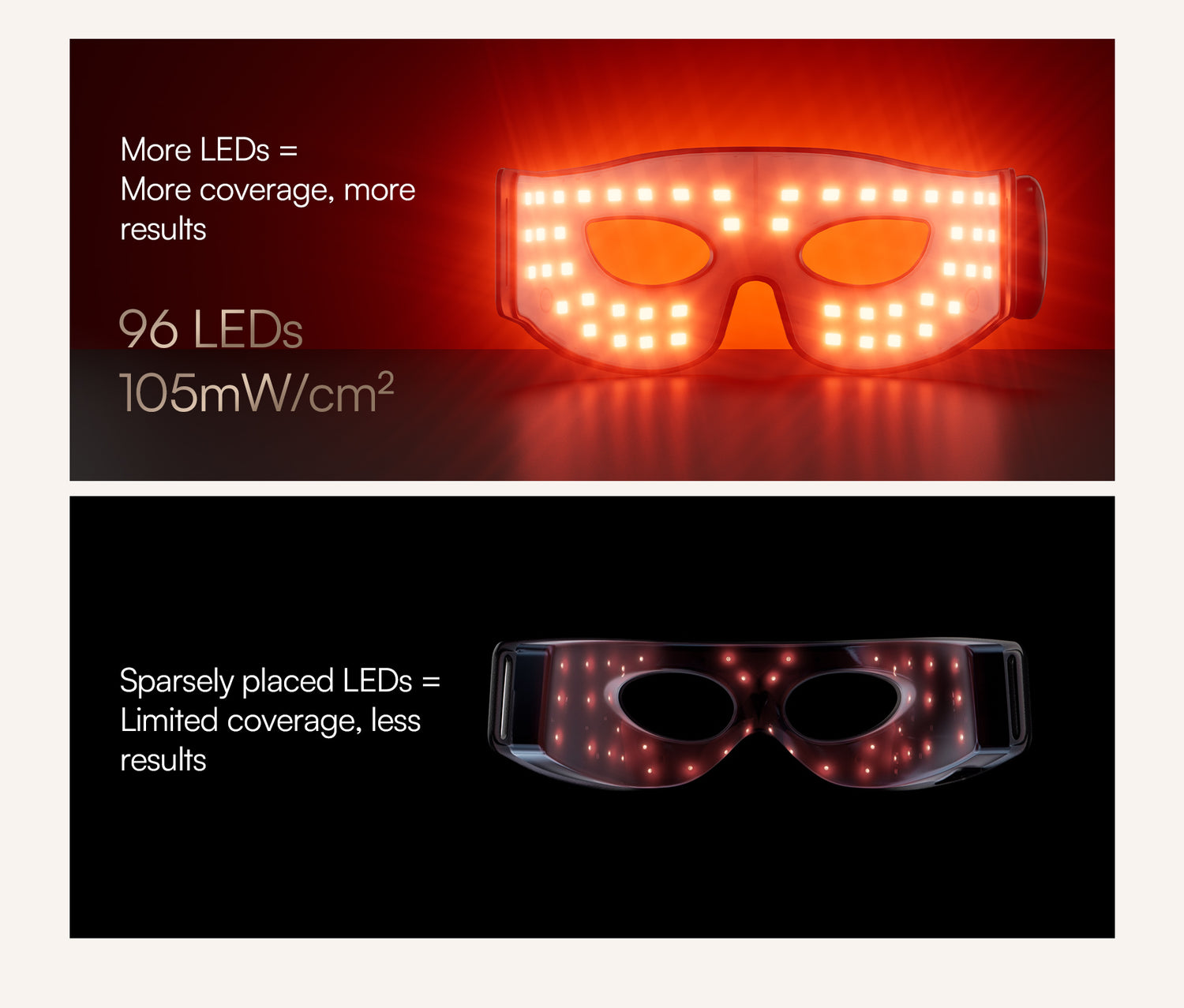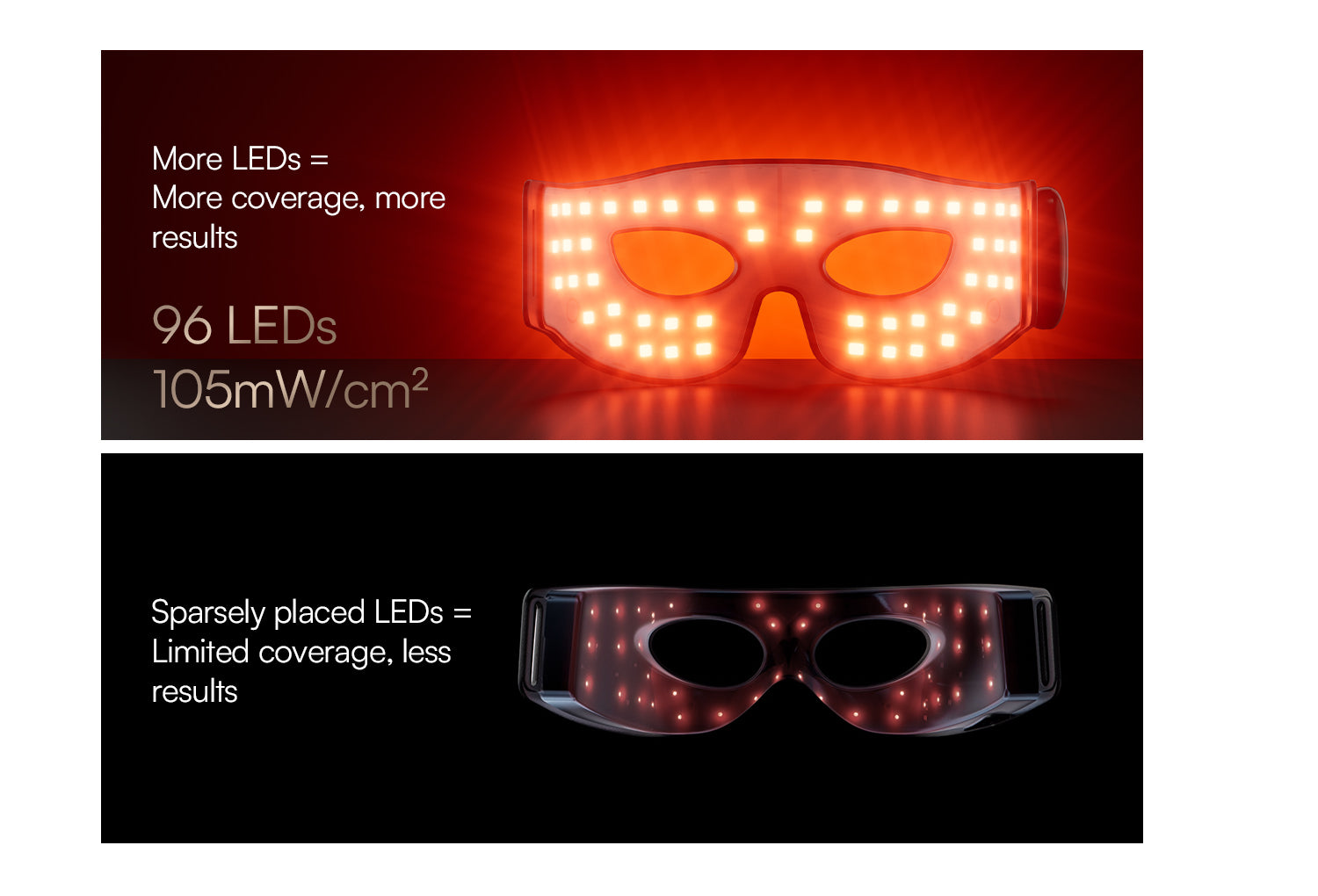 With 96 LEDs delivering up to 85mW/cm², INIA packs 2–3x more light power than typical eye masks — ensuring every inch of your eye area gets the repair it needs.