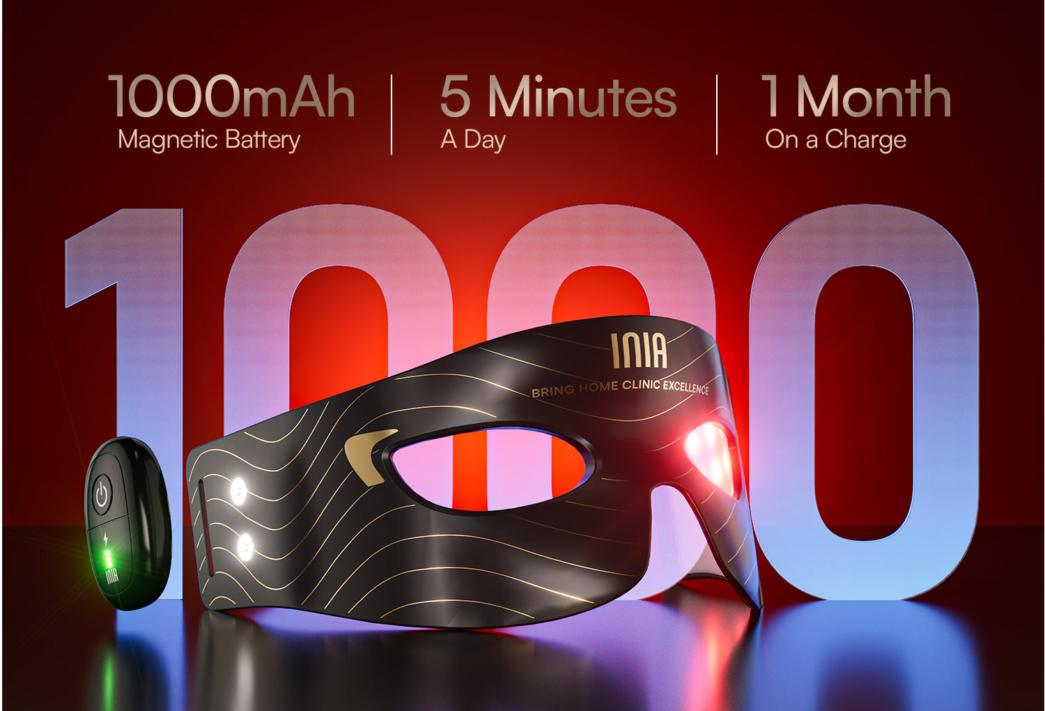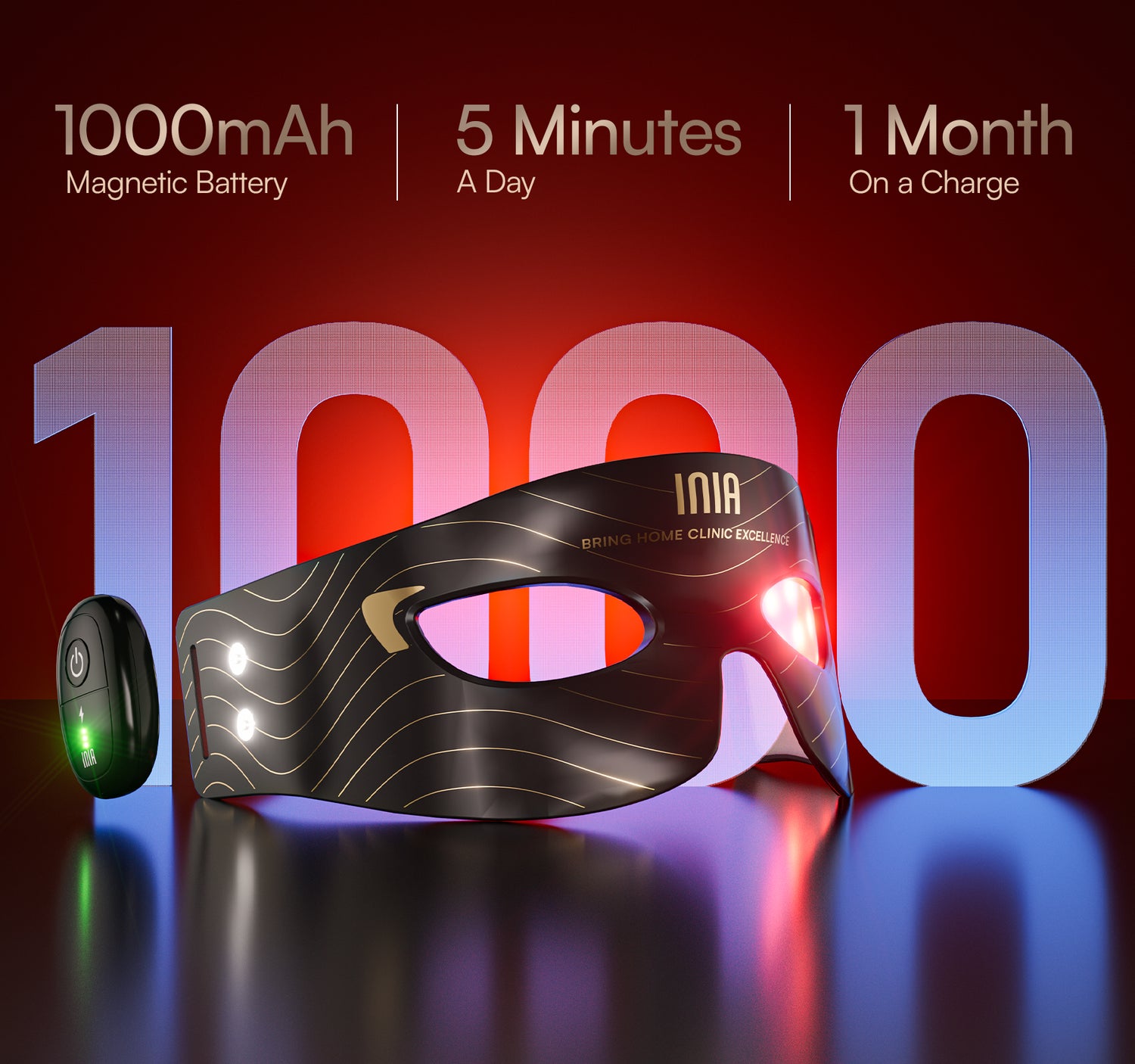 Most LED face masks are designed to avoid the eye area, meaning the part of your face that needs it most receives no treatment. The INIA GLOW Eye Mask is different. It focuses exclusively on the delicate eye zone where the first signs of aging appear, providing high-density LED coverage for the entire area, including the brows and forehead, to specifically target crow's feet, forehead wrinkles, and frown lines (11s).