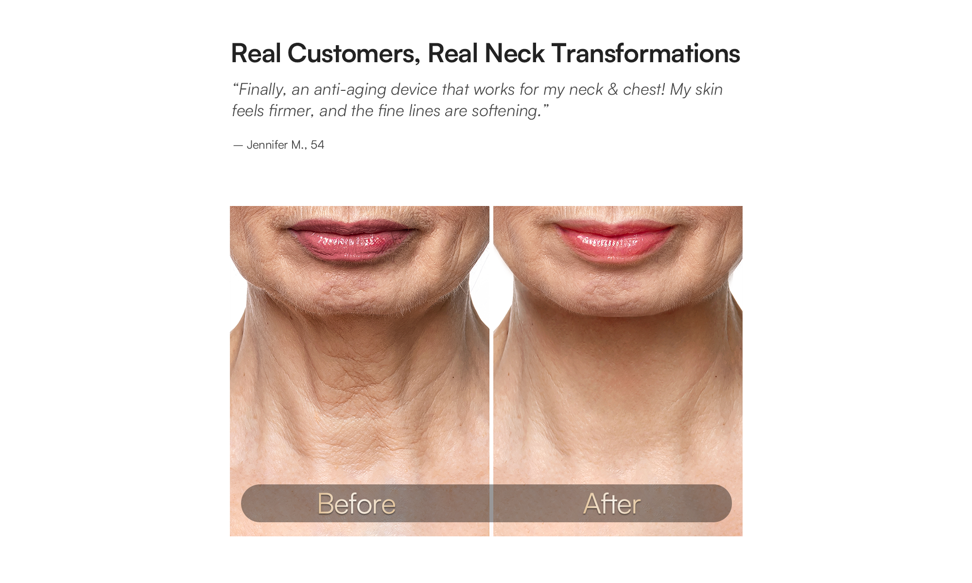 Our dual-wavelength technology (630nm red and 850nm NIR) works at a cellular level, penetrating up to 2x deeper. This synergy helps stimulate collagen-rich, firmer skin, reduces fine lines, and supports overall skin renewal for a smoother, younger-looking appearance in areas often neglected by traditional face masks.
