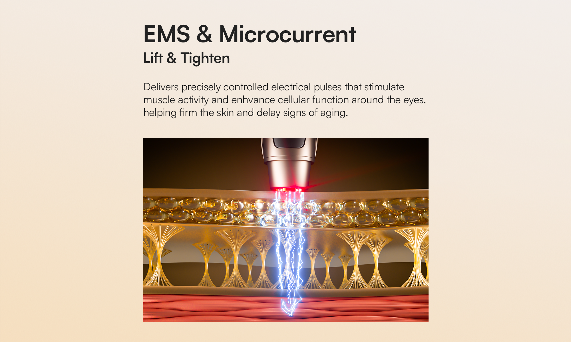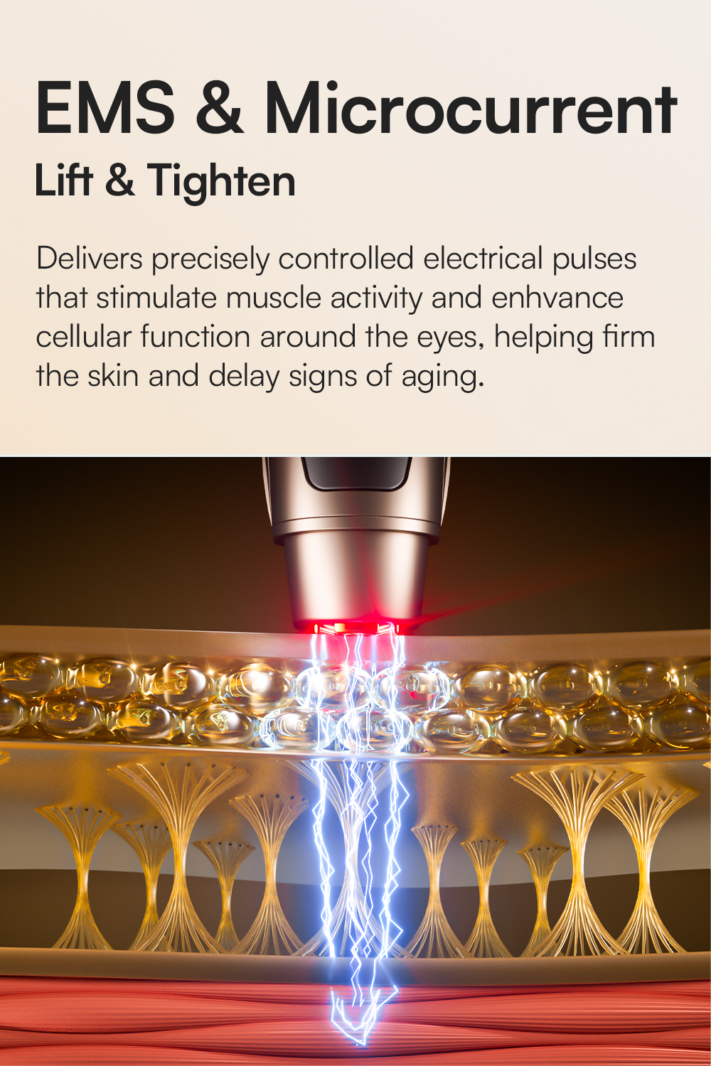 Yes! While INIA LUMIN is designed for eye care, its advanced Red Light Therapy stimulates collagen production to reduce wrinkles and improve elasticity. EMS & Microcurrent help lift and firm, while Thermal Frequency enhances absorption and reduces puffiness. Vibration Massage promotes circulation and skin elasticity. These technologies make INIA LUMIN a complete anti-aging solution for areas like smile lines, forehead wrinkles, and lip lines.