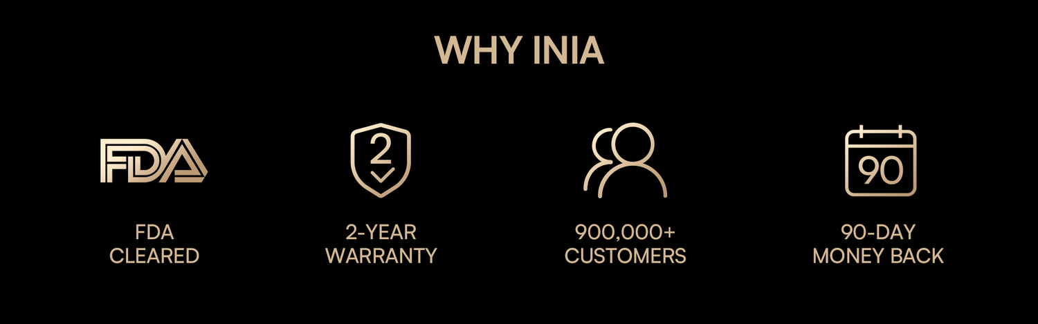 Not all red light is created equal. INIA uses the golden 850nm NIR wavelength—clinically shown to reach deeper layers for real anti-aging results.
