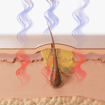 Normal skin bacteria colonize these pores causing the inflammation and redness of the skin that we associate with acne. The bacteria responsible for this inflammation (known as P.acnes), produces natural chemicals called porphyrins, which are sensitive to the wavelengths (colors) of light used by INIA.