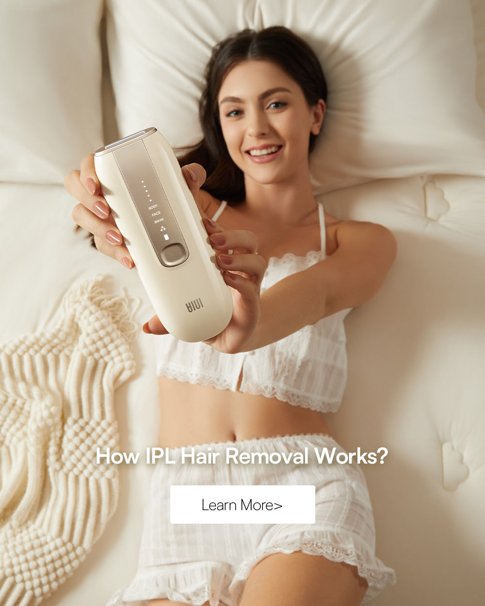 FACE, BODY, and BIKINI modes plus 5 intensity levels each, INIA FOND is specially designed to treat all skin sensitivities with the utmost care and comfort. Ideal for first-time users.