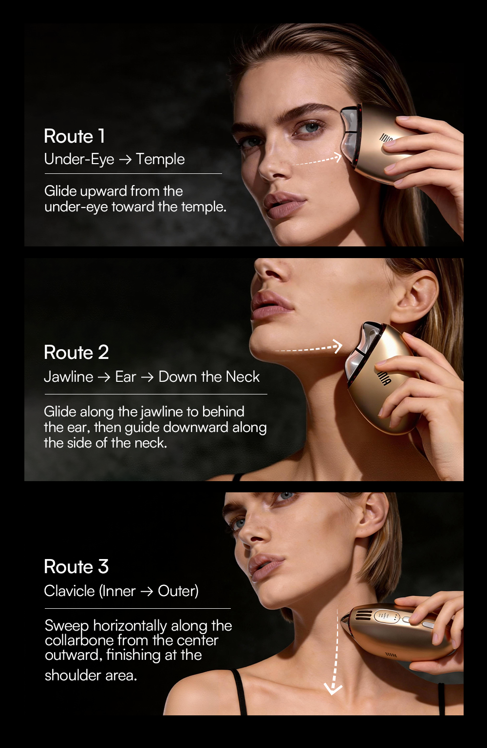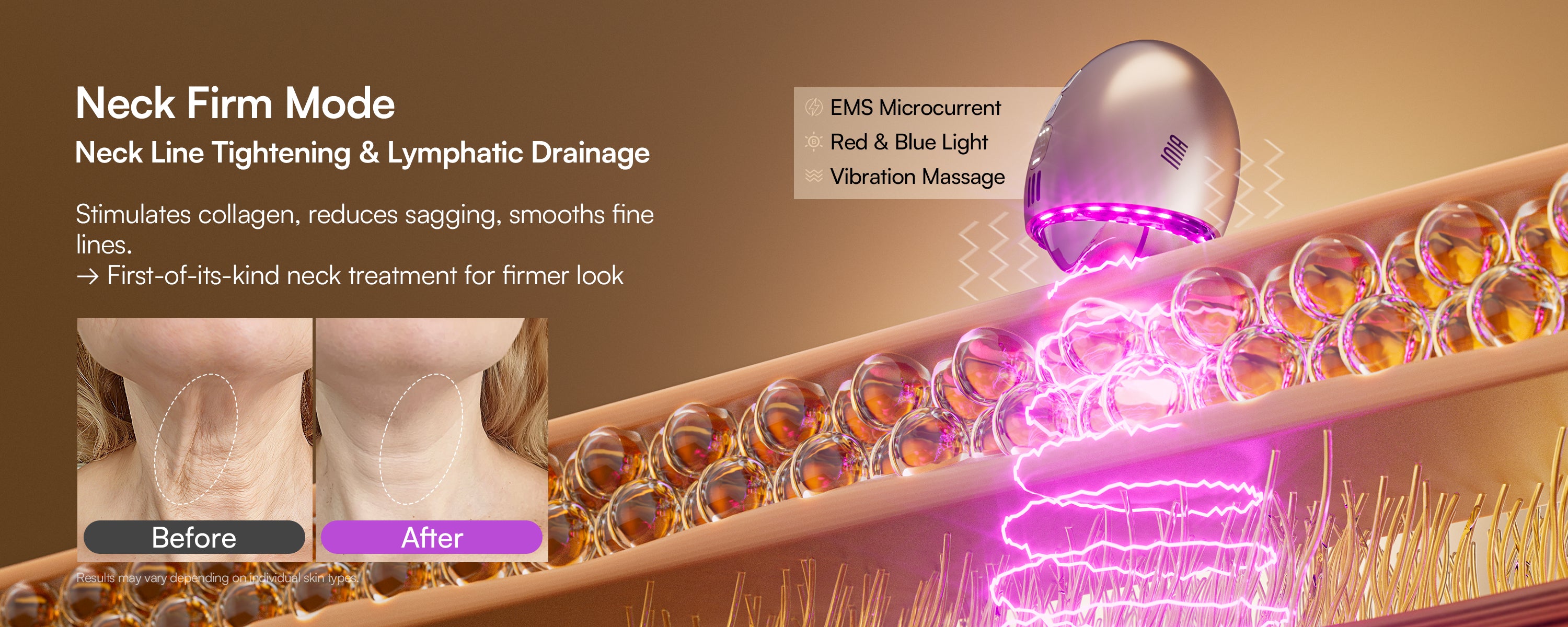 It's the first Gua Sha device with a mode specifically engineered for the neck. It uses microcurrent and red+blue light to firm sagging skin, smooth lines, and support lymphatic drainage in this often-neglected area.