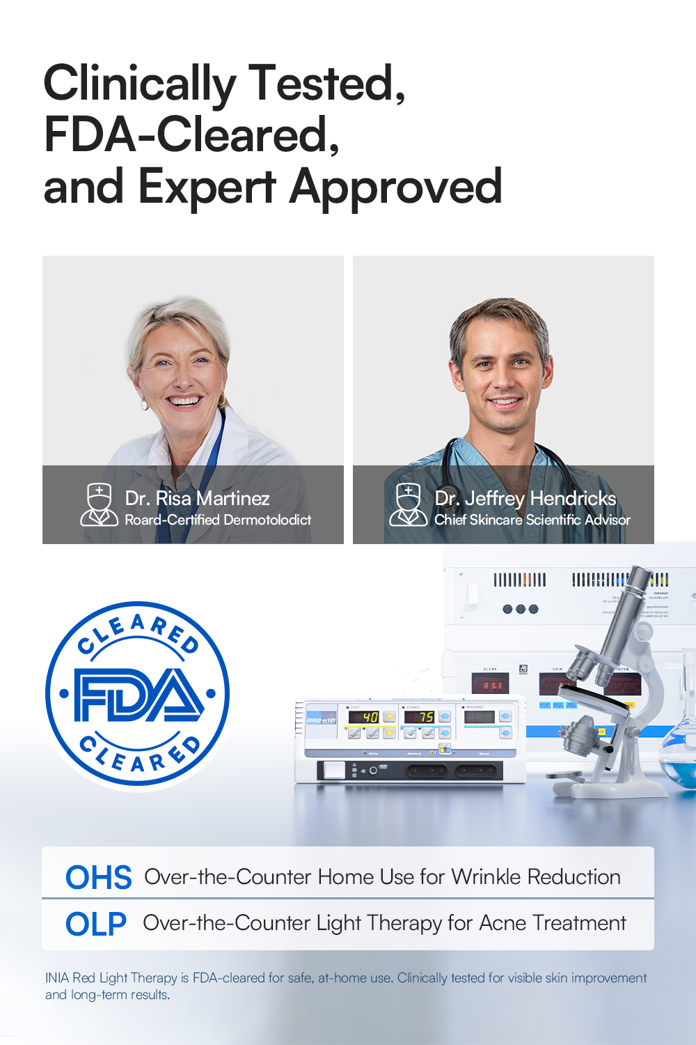 With consistent use of your INIA GLOW 2, users typically report visible improvement in firmness, skin tone, and radiance in as little as 4+ weeks. We encourage taking before-and-after photos to truly appreciate your progress!