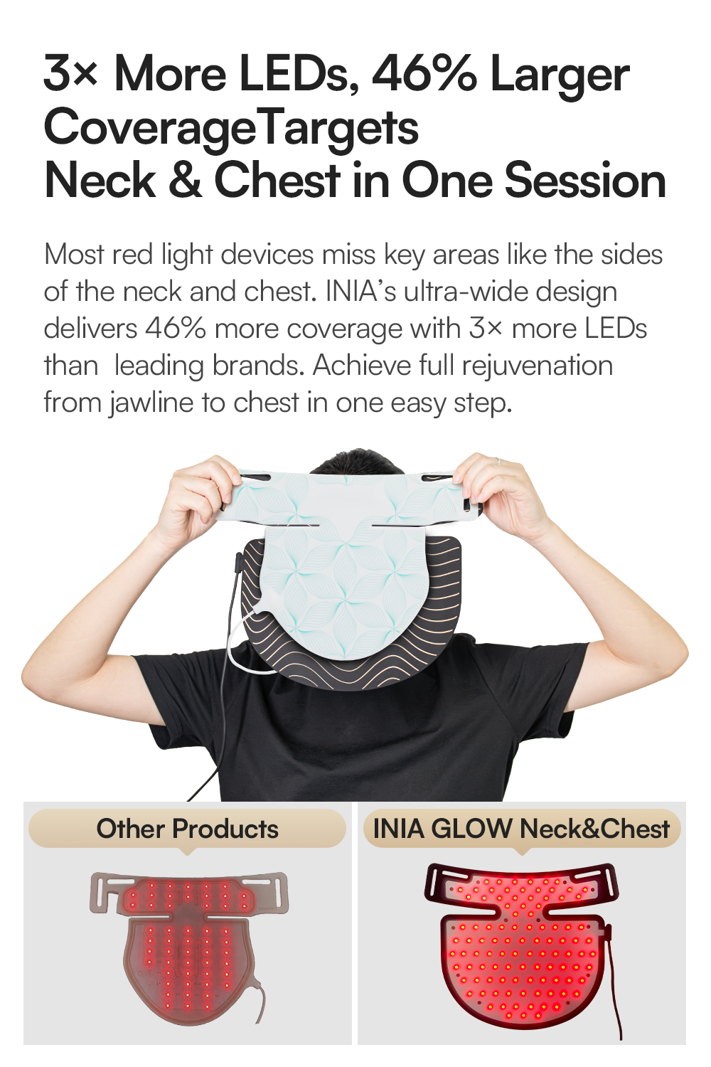 What makes INIA GLOW Neck & Chest Red Light Therapy's coverage so effective?