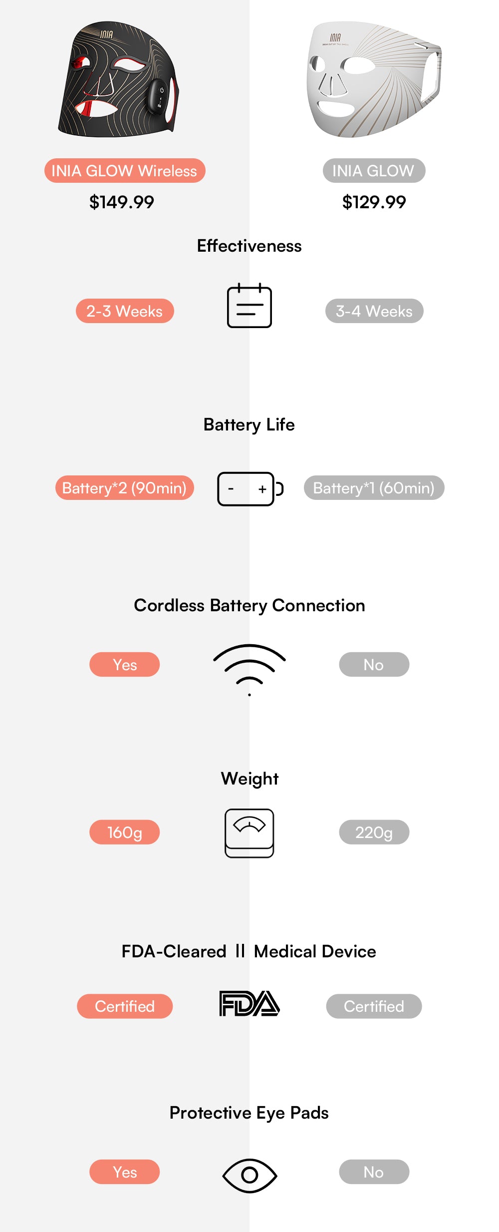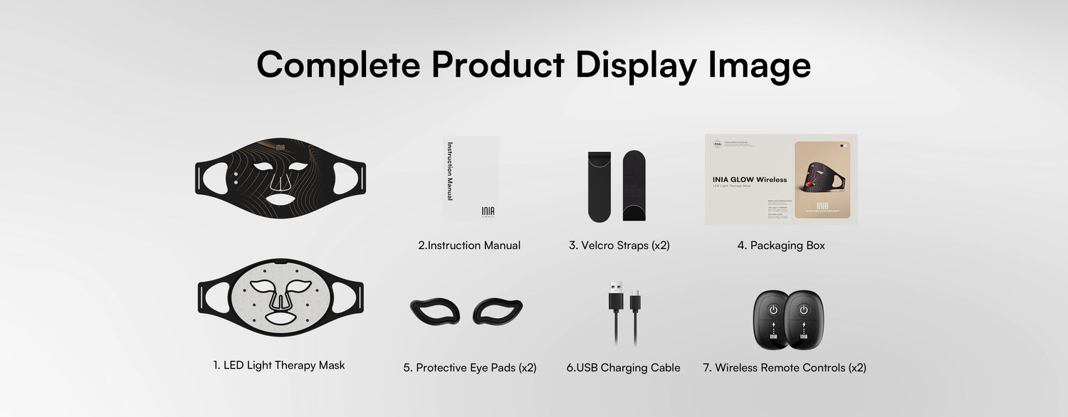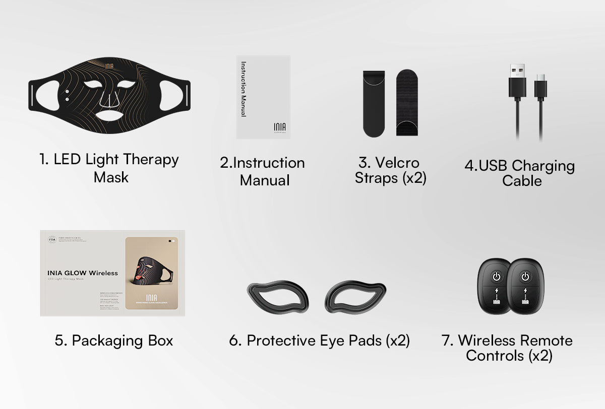 For added comfort, the INIA GLOW Wireless Mask comes with removable eye pads. You can choose to use the mask with or without the pads—both options are safe for your eyes. Whether you keep your eyes open or closed, the device remains effective and comfortable.