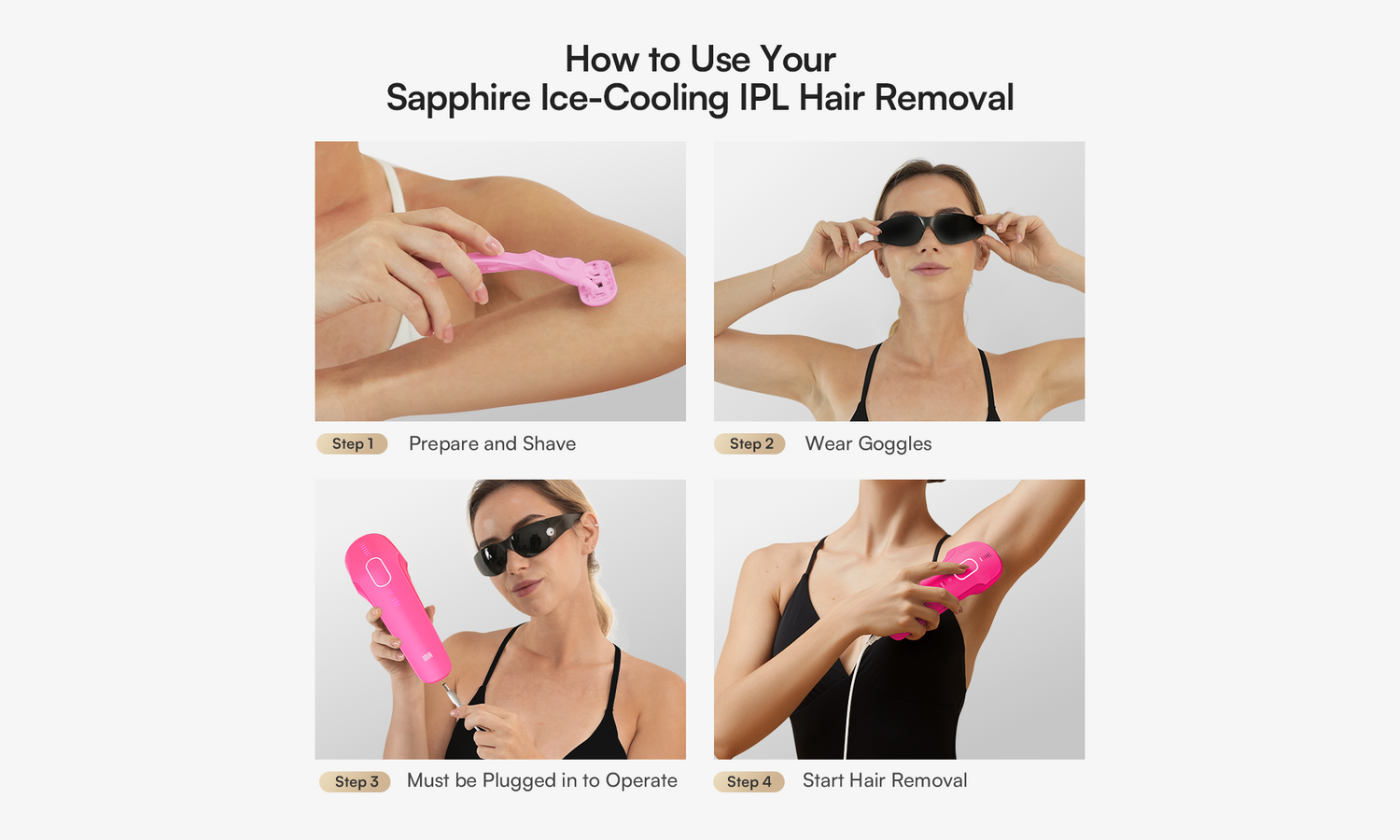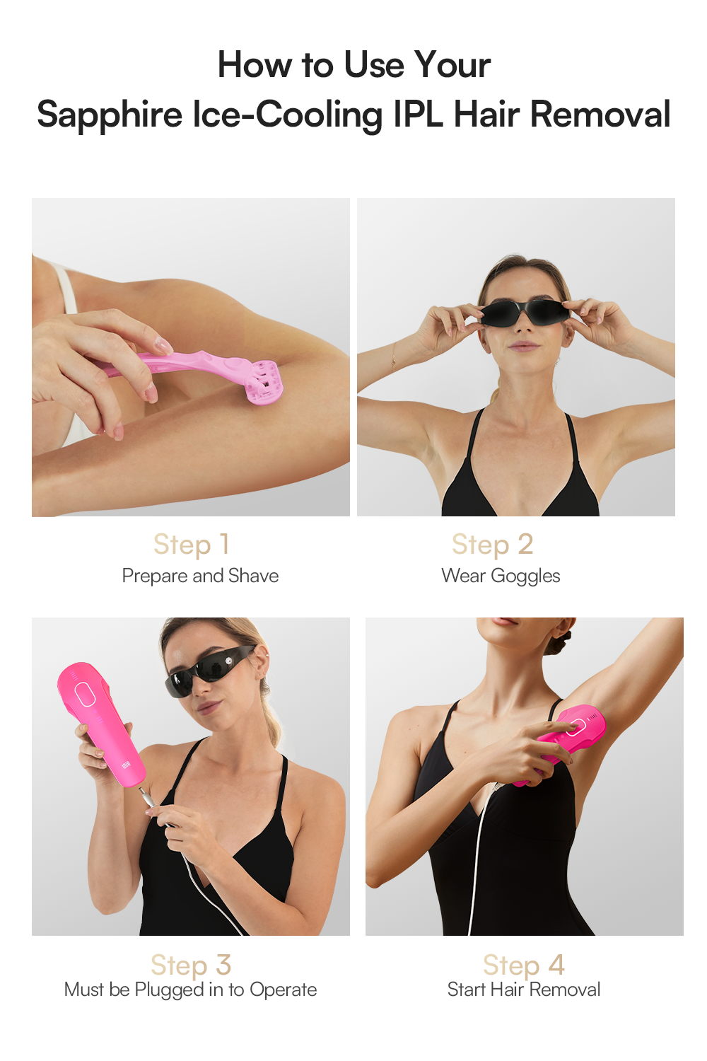 For optimal results, we suggest using the INIA IPL device 4-5 times per week for the first two weeks. To keep your skin smooth and hair-free, continue with sessions 2-3 times per week for the next two weeks to two months.