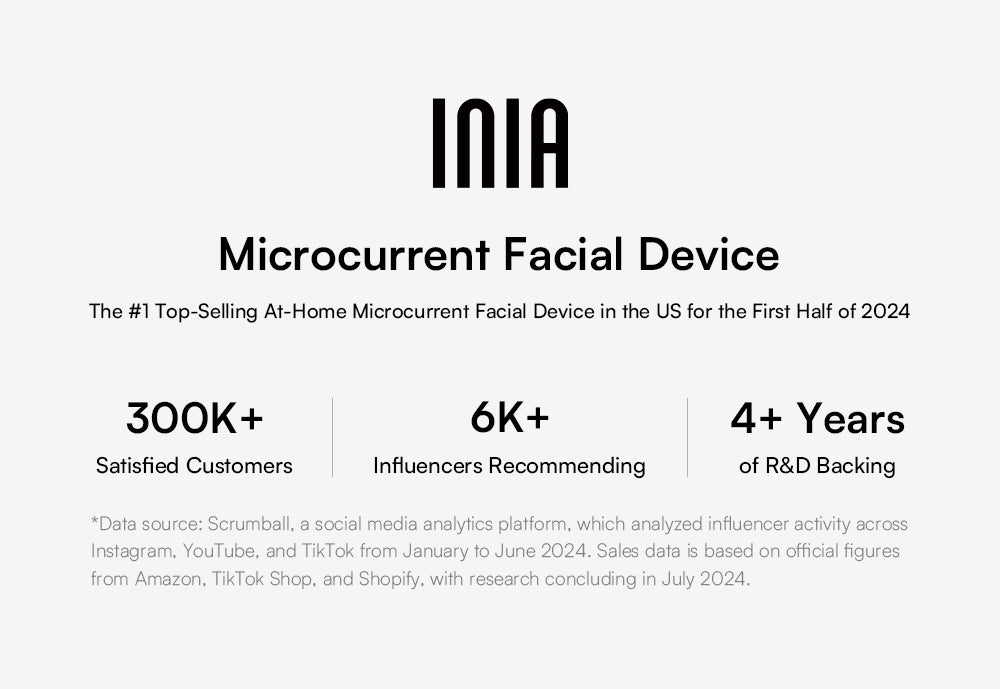 The INIA microcurrent facial device deeply rejuvenates all layers, from surface to muscle, delivering effective anti-aging results for a youthful glow.