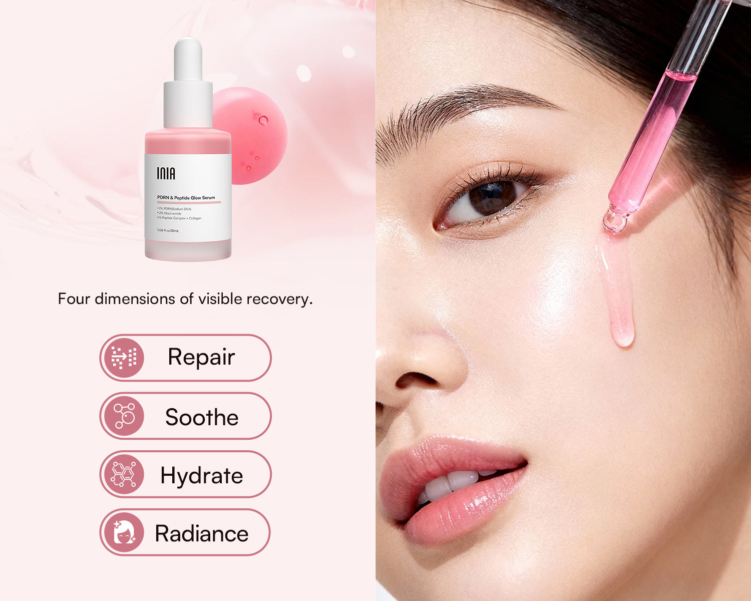 Pair with INIA SPHERA EMS & RF Device and INIA PDRN + Peptide Repair Cream for complete daily recovery care.