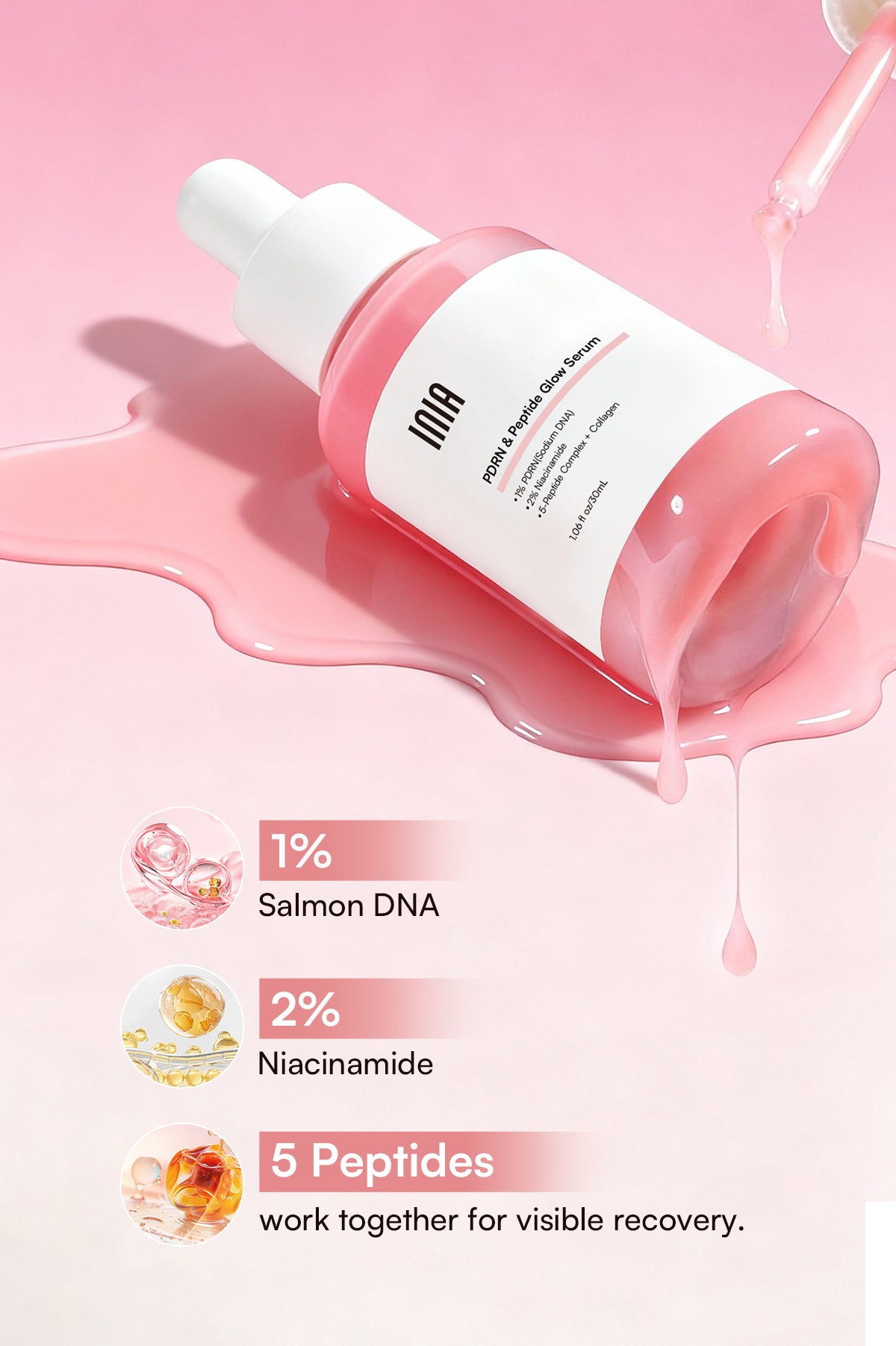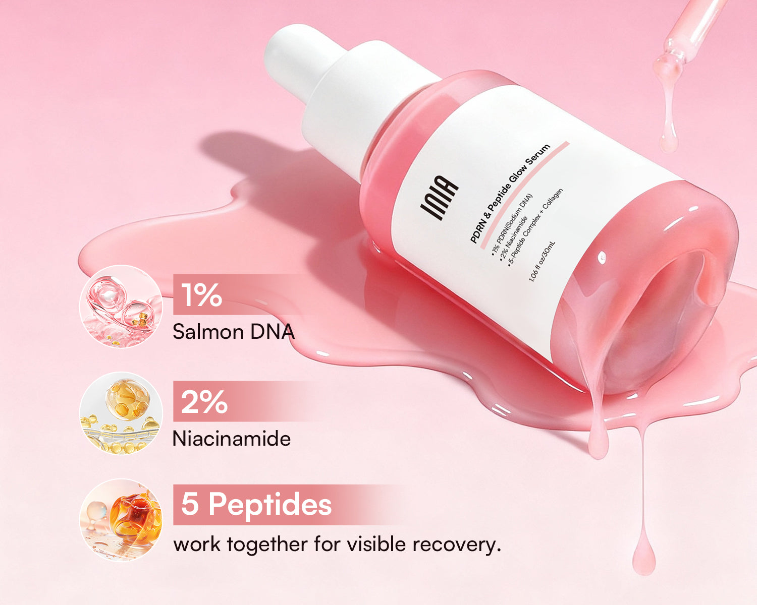 1% Salmon DNA, 2% Niacinamide, and 5 Peptides work together for visible recovery.