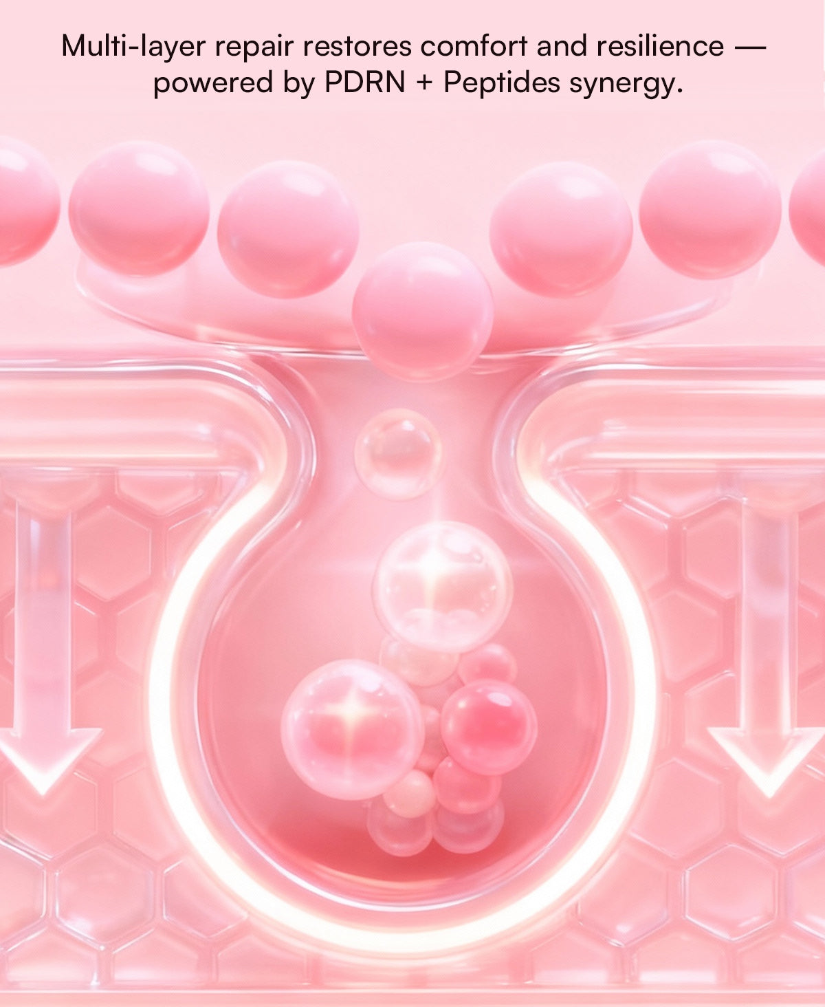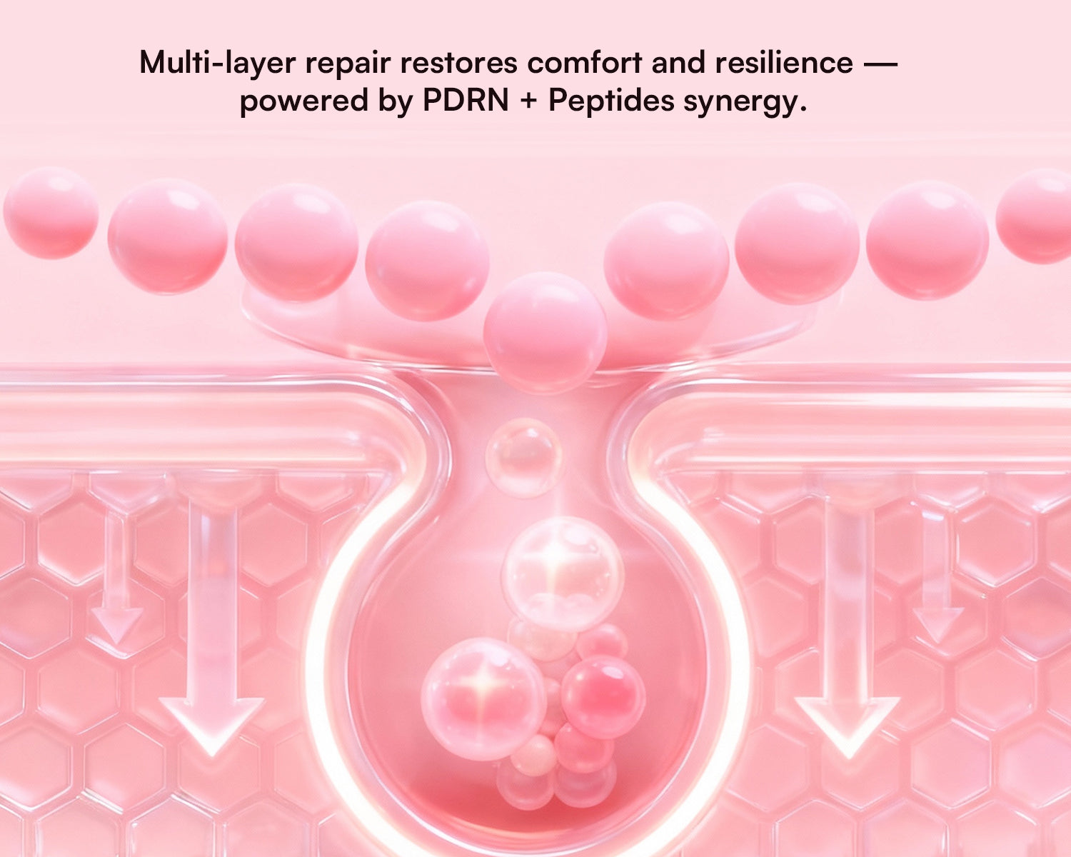 Multi-layer repair restores comfort and resilience — powered by PDRN + Peptides synergy.