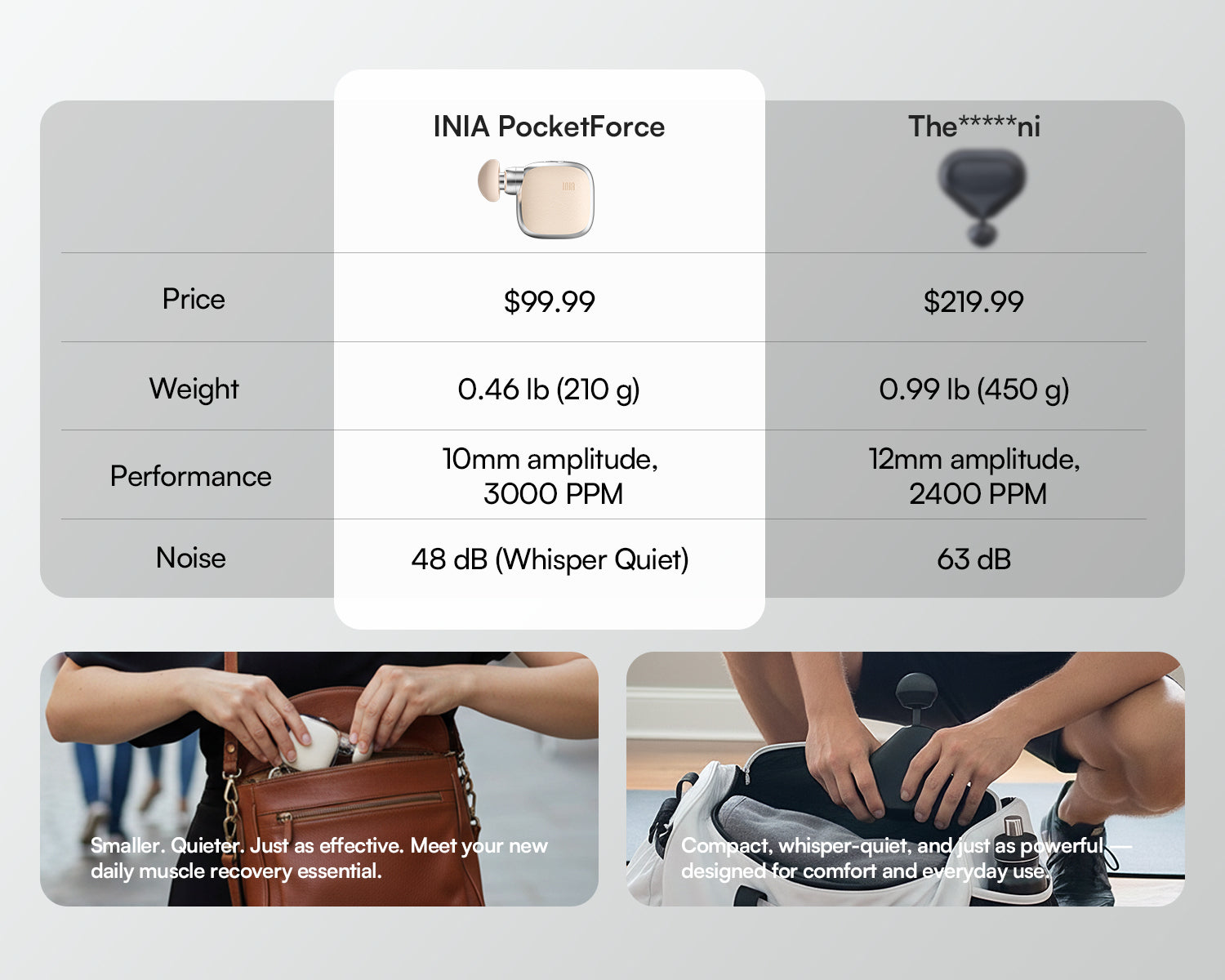 Absolutely. Don't let its mini size fool you. The INIA PocketForce features a 7mm stroke depth (amplitude), which is powerful enough to penetrate deep muscle layers and effectively relieve tension and soreness, rivaling the performance of many larger massage guns.