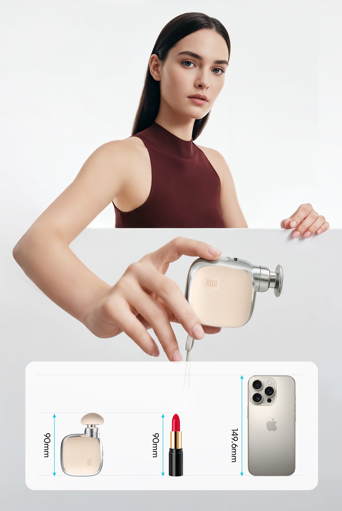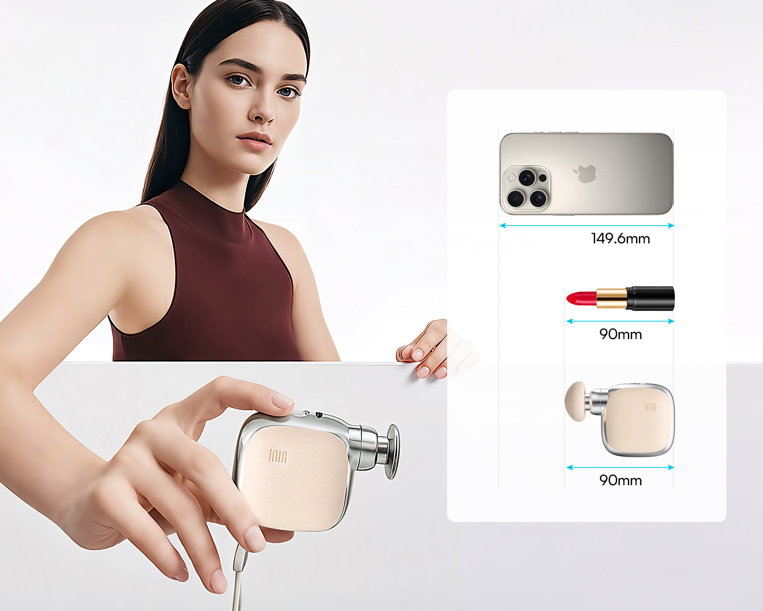 Lighter than your phone, smaller than a lipstick — carry it anywhere with ease.