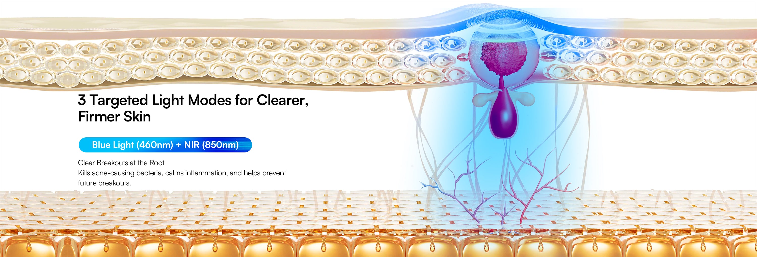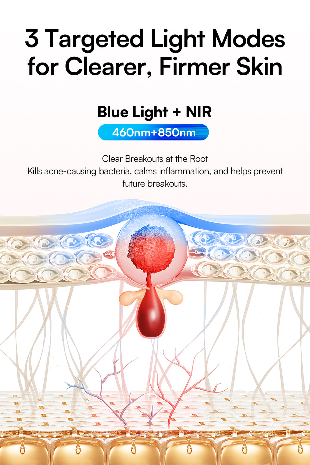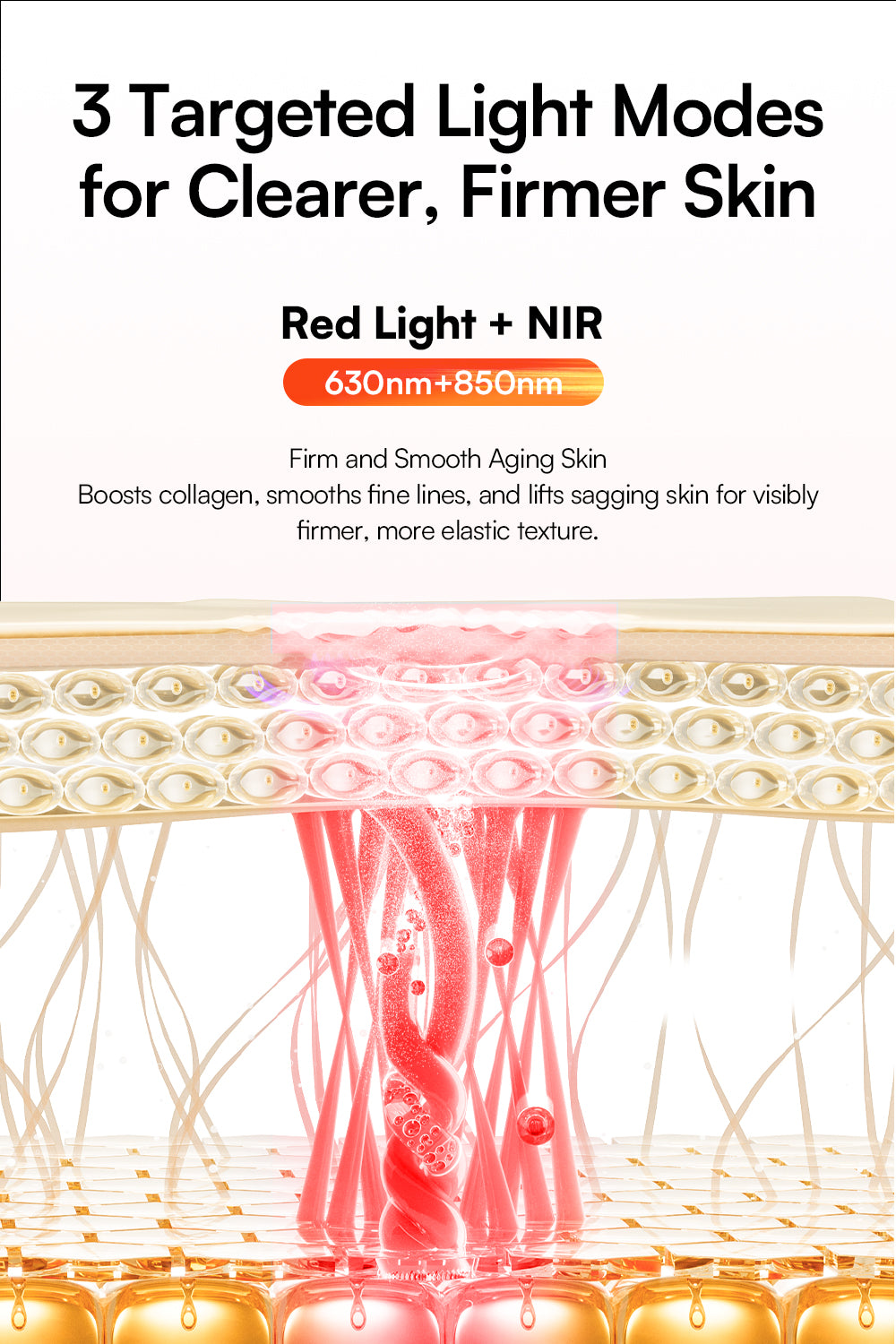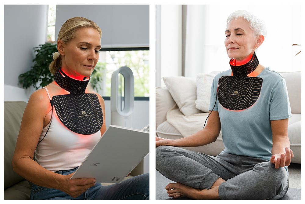 Near-infrared penetrates deeply, stimulating collagen and elastin production, promoting natural repair, and reducing wrinkles. It complements red light’s surface benefits, maximizing overall skin and tissue health for a comprehensive anti-aging and repair solution.