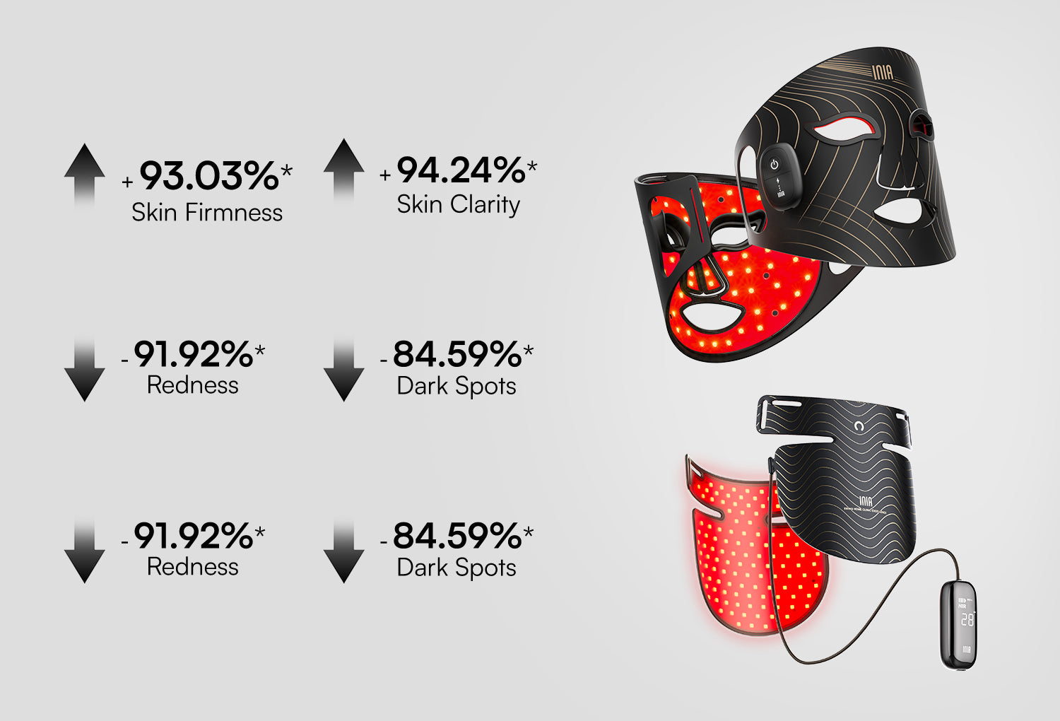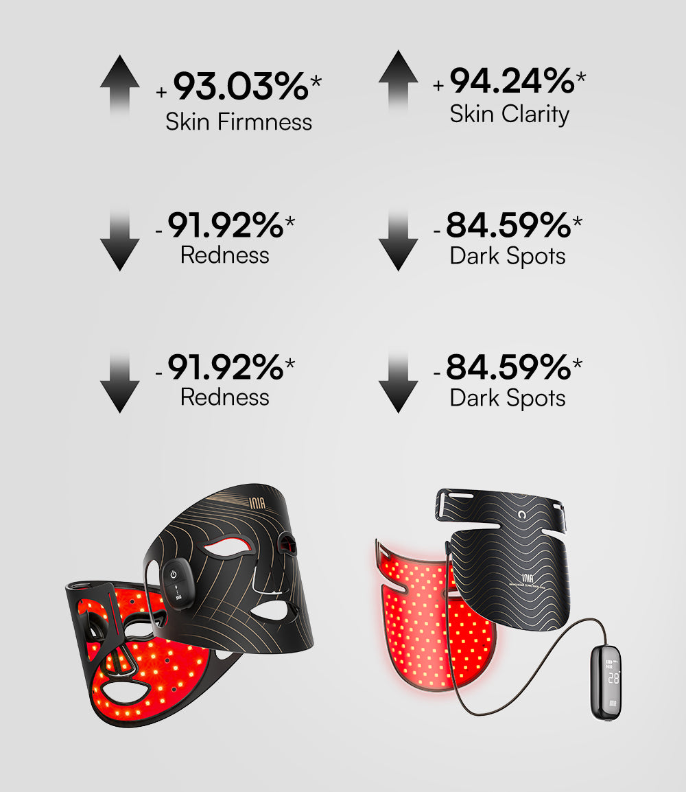 INIA’s red light therapy products utilize advanced LED phototherapy, a technology widely trusted by dermatologists. Emitting clinically proven wavelengths—red (630nm), blue (460nm), yellow (610nm), and near-infrared (850nm, invisible to the eye)—INIA devices target cell components, especially the mitochondria, to trigger beneficial biochemical reactions. This process enhances skin recovery, boosts cell function, and promotes healing, resulting in firmer, clearer, and rejuvenated skin.