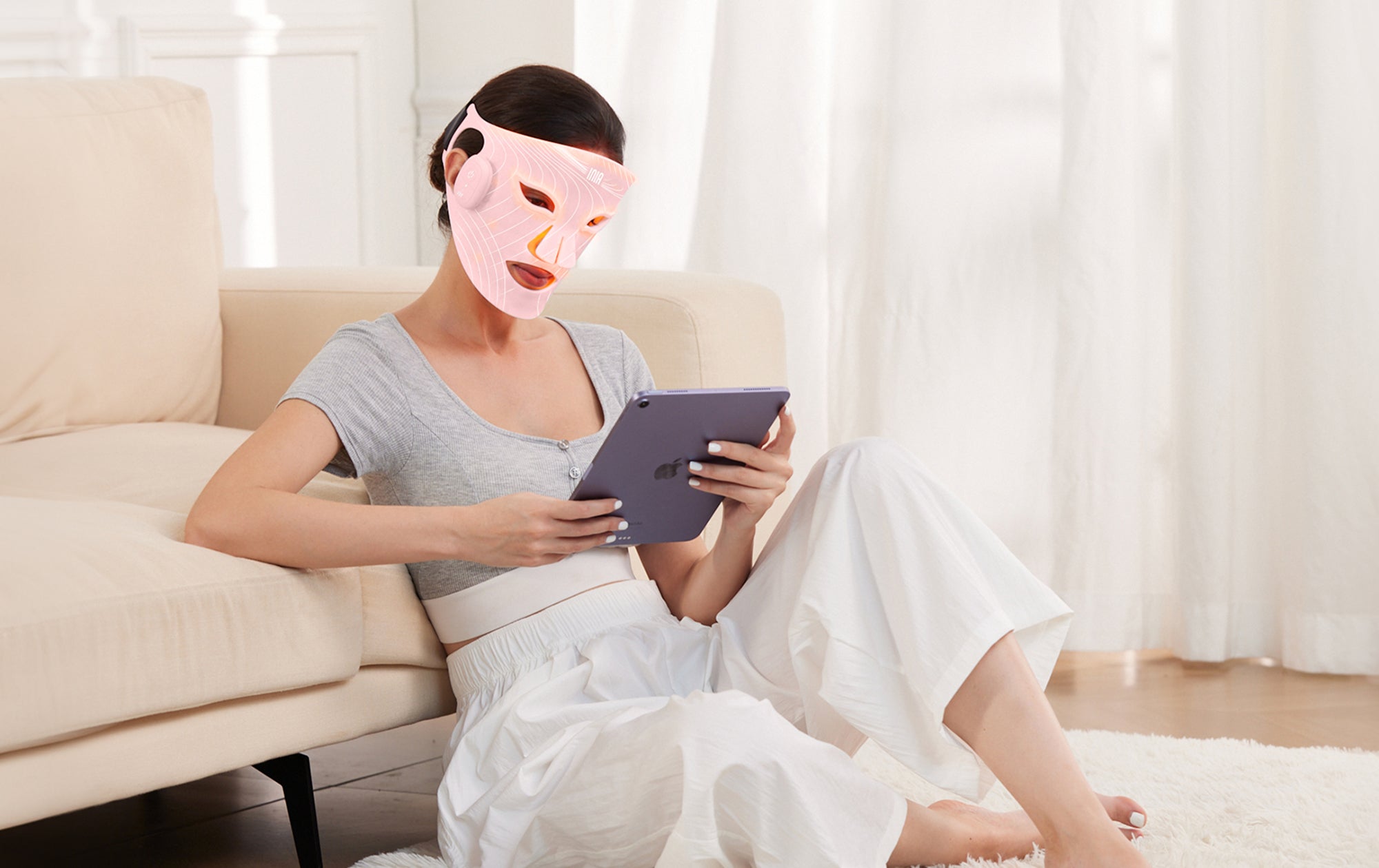 How does INIA GLOW wireless red light mask work?